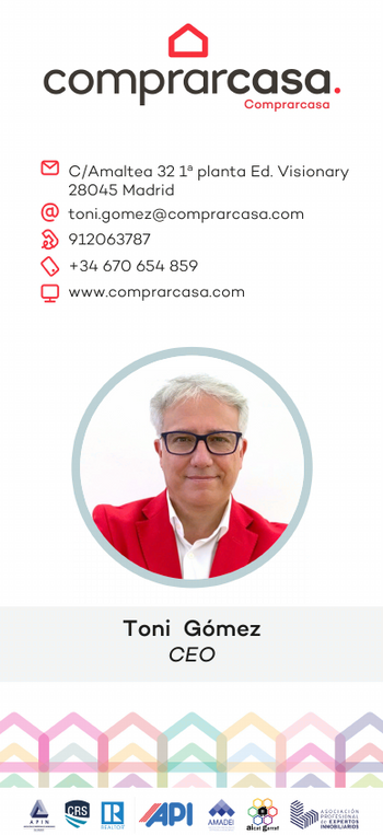 Tarjeta con foto del agente que se utiliza para enviar por WhatsApp después de una llamada Propietarios y Compradores. Posibilidad de dos direcciones de agencia.